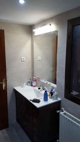 Se demolió completamente el único baño existente para sustituir la fontanería, electricidad y saneamiento, con posterior alicatado y solado de material porcelánico de gama alta suministrado por Azulejos Peña. Recibido de bañera y colocación de mueble de baño con accesorios e iluminación led y grifería según modelos mostrados a la propiedad.
